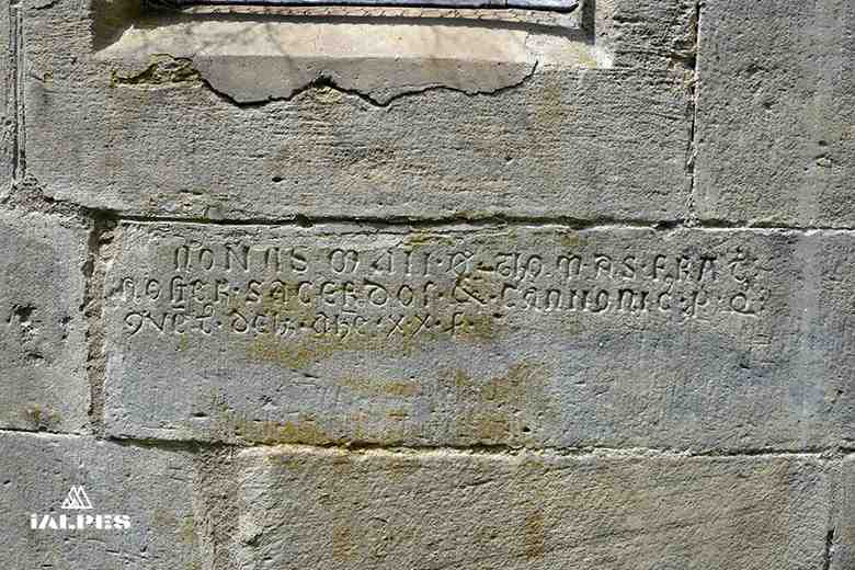Sur le mur extérieur du second contrefort apparaissent les inscriptions suivantes :