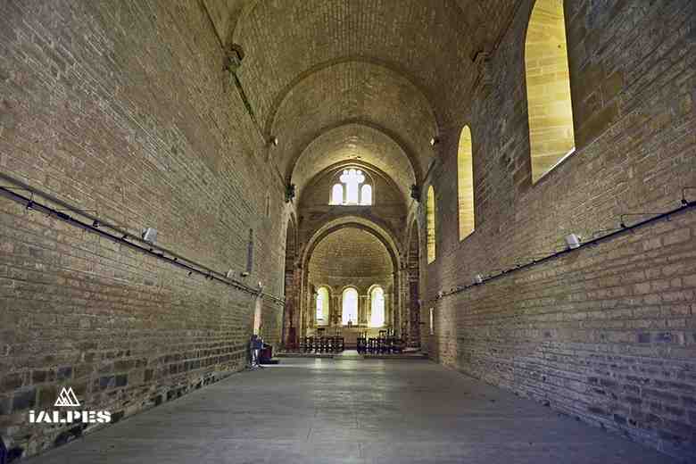 L’unique nef, étroite et oblongue à 40,30 m de longueur et 7,80m de largeur se terminant par un transept de 21,30m.